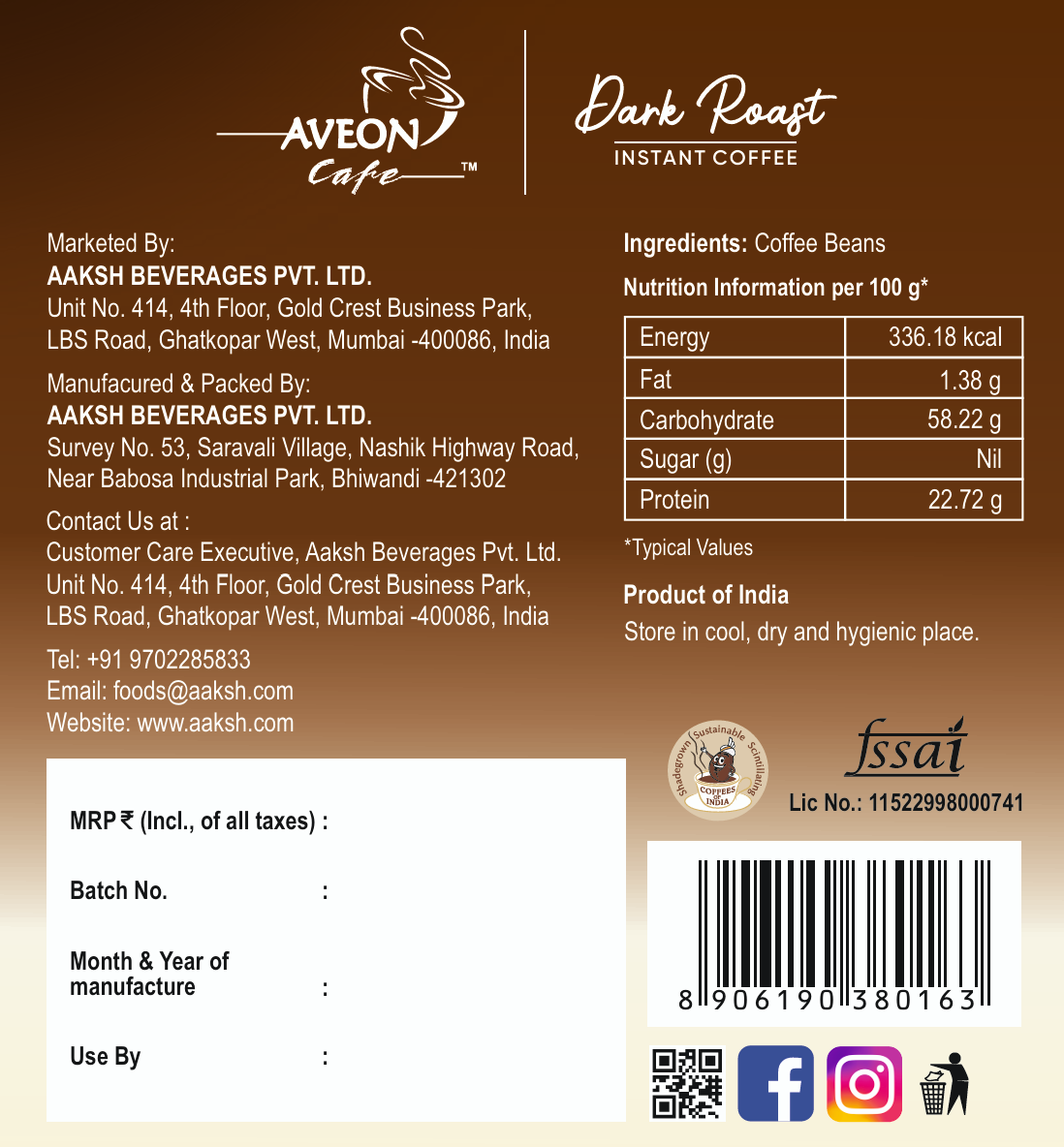 Bold Dark Roast Flavour – Experience deep, intense flavour in every sip with premium dark roast instant coffee.