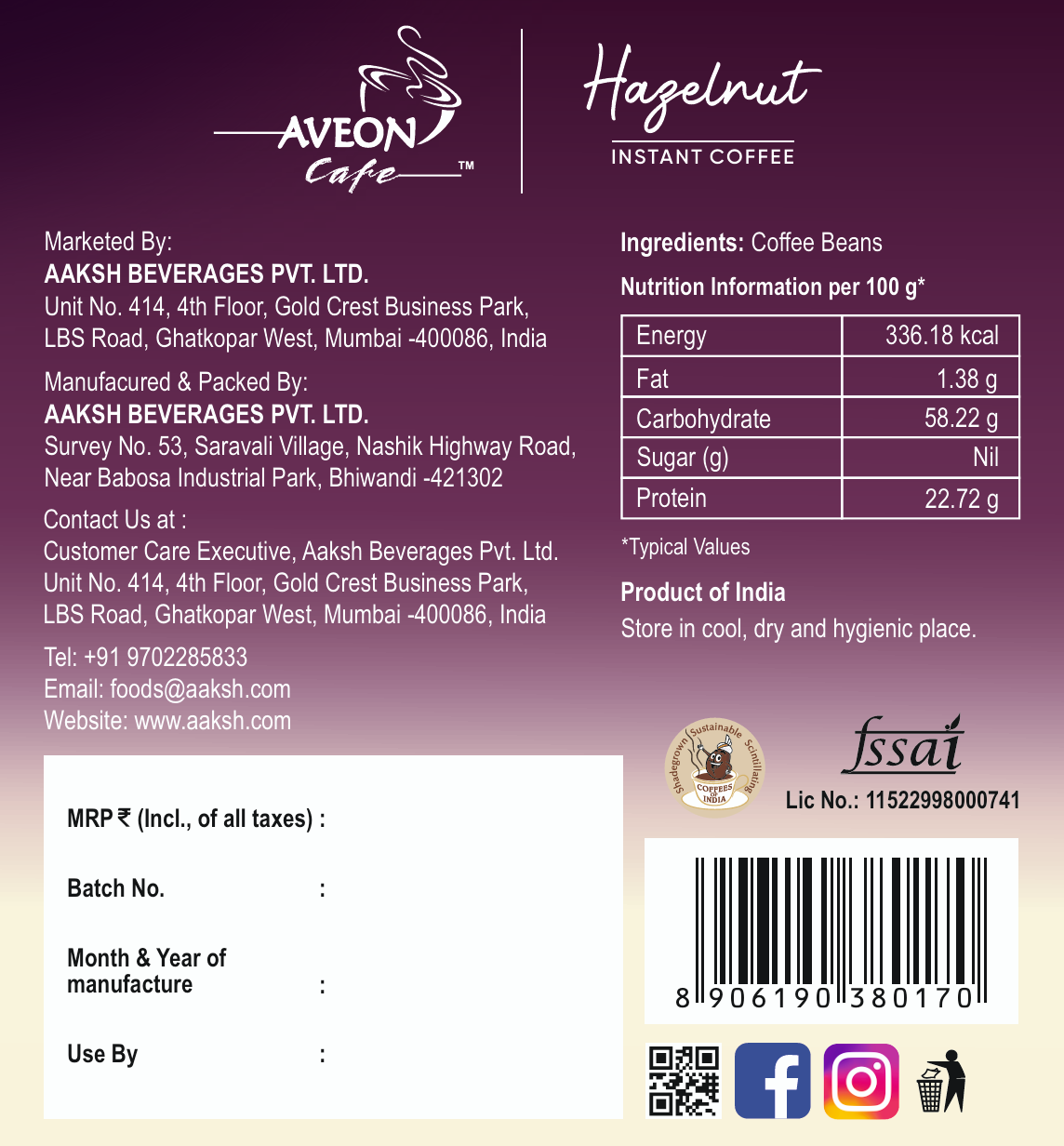 Nutty Hazelnut Aroma – A delicious blend of rich coffee and the signature nutty hazelnut flavour.