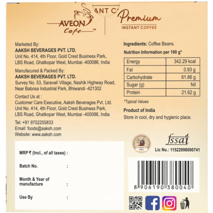 Premium Agglomerated Blend Crafted with a fine freeze-drying process to lock in flavour and aroma for a rich, full-bodied coffee experience.Robust Aroma, Smooth Taste Enjoy every sip with a strong, fragrant profile and velvety finish that caters to refined palates. Arabica & Robusta Beans Expertly blended for strength and balance, offering depth of flavour and a naturally bold kick.Hot or Cold, Espresso or Cappuccino Versatile enough to brew a quick espresso, creamy cappuccino, or refreshing cold coffee.