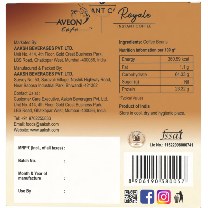 25 sachets (50g total), hygienically packed and easy to carry for home, office, travel, or gifting.Made from high-quality Arabica & Robusta beans for a rich, aromatic, and indulgent coffee experience. Strong, full-bodied flavor with smooth texture—crafted for coffee connoisseurs who enjoy depth and richness. Instant Brewing Convenience,Dissolves instantly for a perfect cup in seconds—ideal for busy mornings or energy breaks.