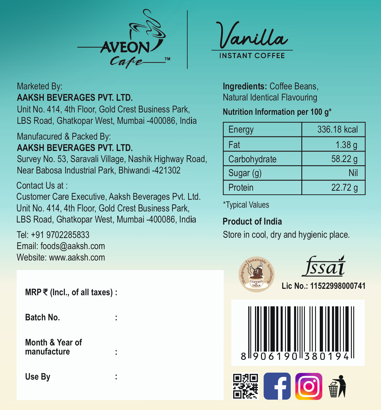 Smooth Vanilla Flavour – Enjoy the comforting aroma and taste of vanilla blended with rich coffee.